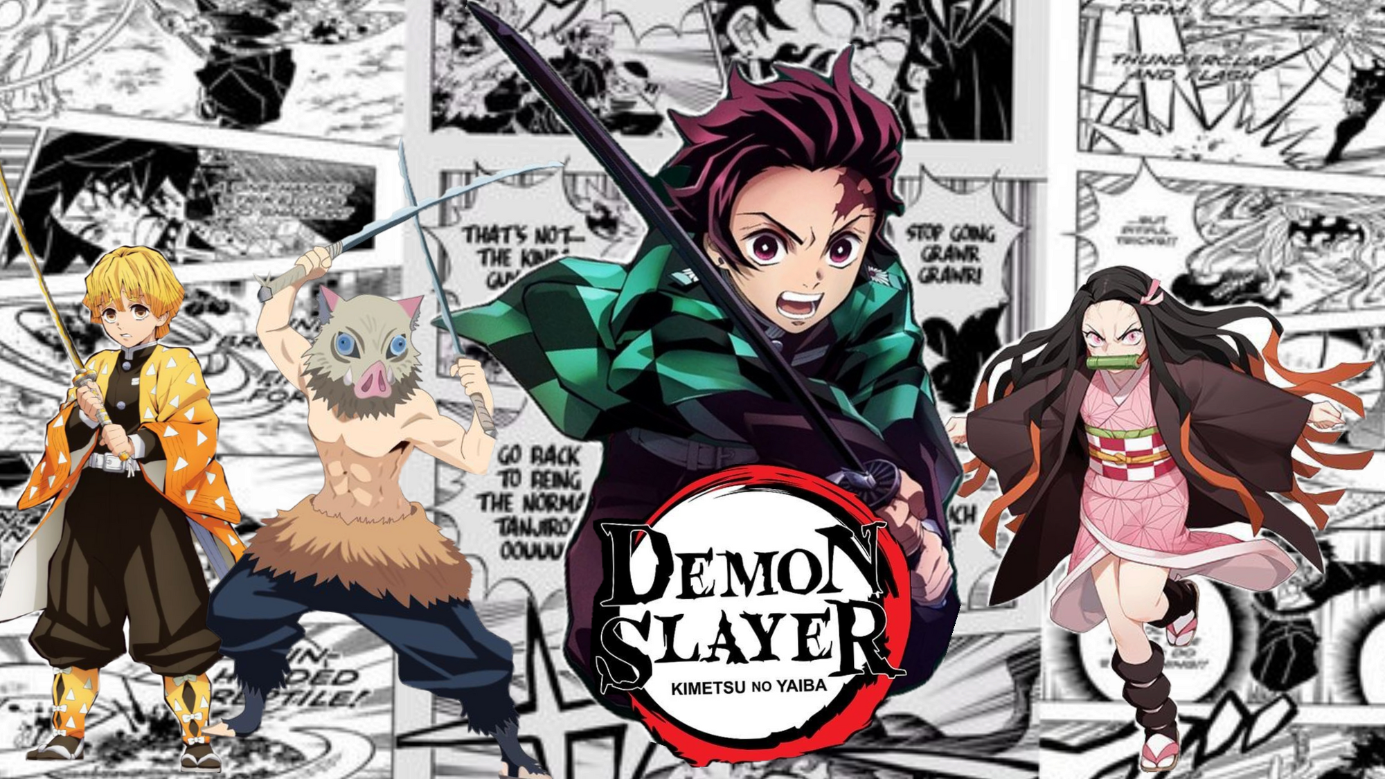Unique Pop Art Design: The graphic is split into four vibrant panels, featuring Tanjiro Kamado,...